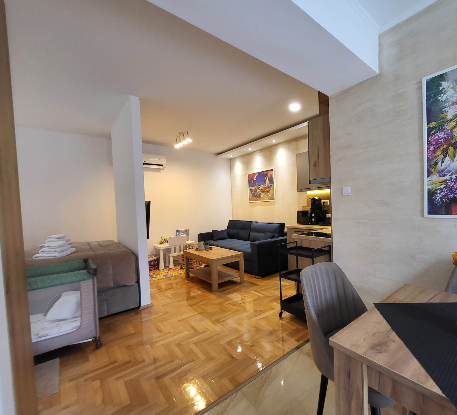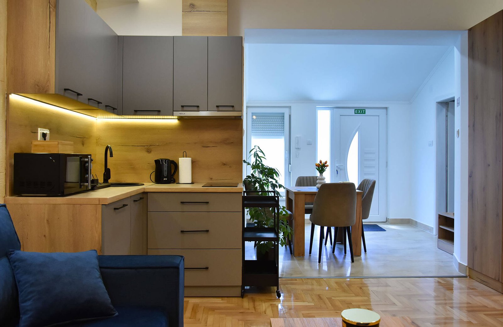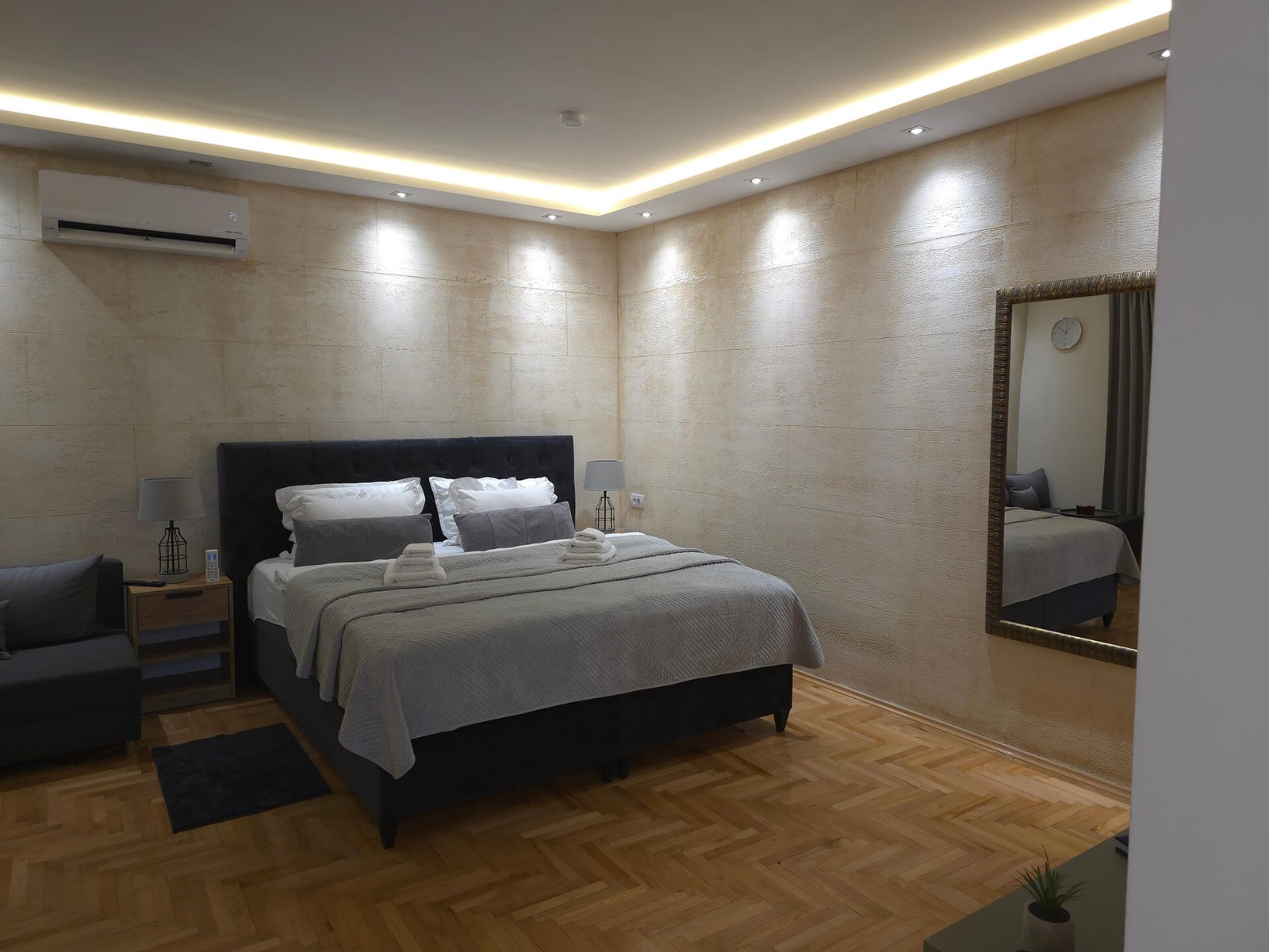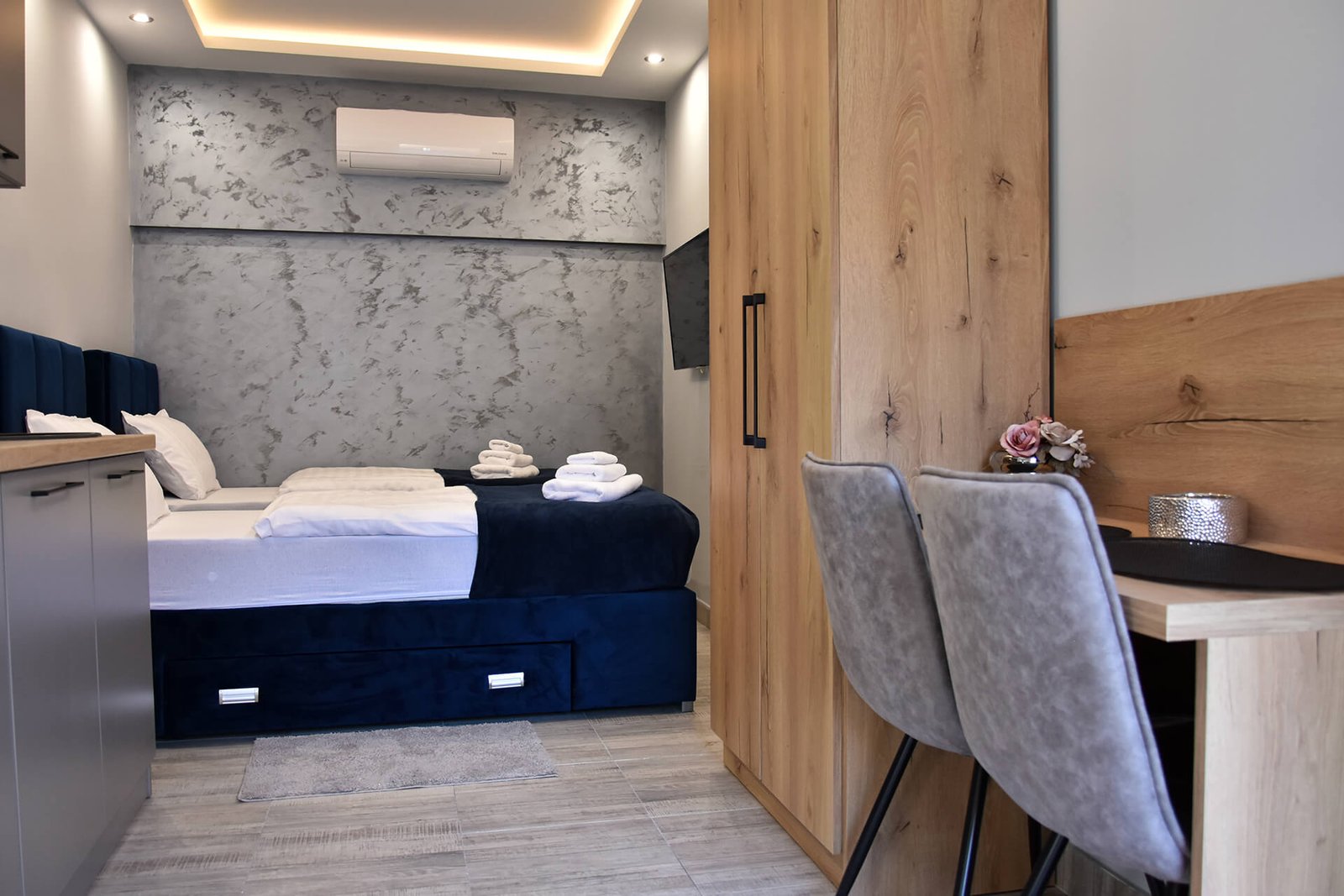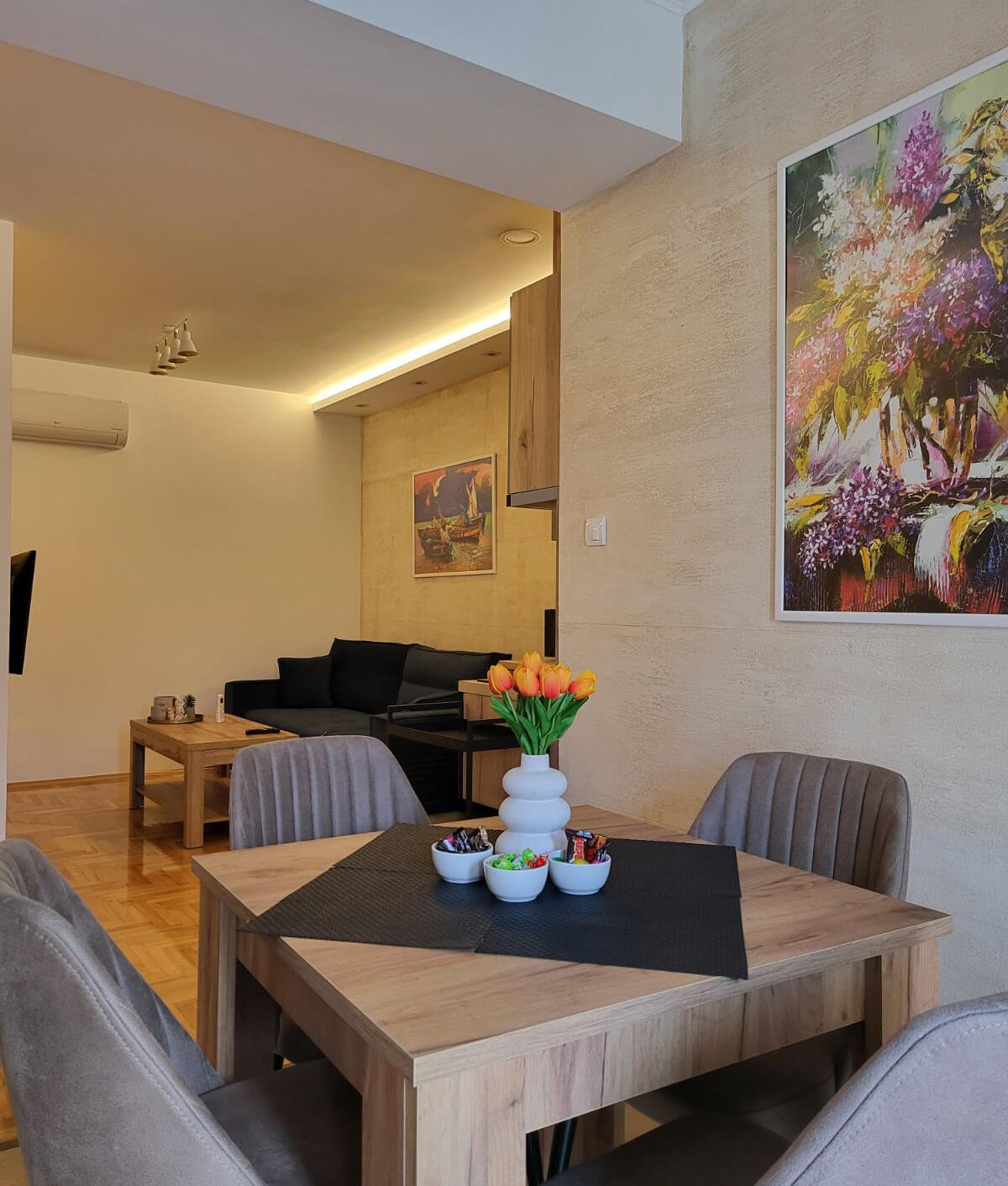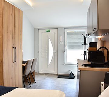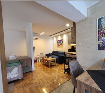 Dobrodošli u moderan prostor koji kombinuje udobnost i eleganciju, kreiran da zadovolji sve vaše potrebe. Naši apartmani pružaju jedinstvenu atmosferu, idealnu za odmor ili poslovna putovanja. Svaki kutak je pažljivo osmišljen kako bi spojio eleganciju, funkcionalnost i vrhunske pogodnosti. Bilo da tražite mir i privatnost ili udoban prostor za opuštanje, kod nas ćete pronaći savršeno mesto za boravak.